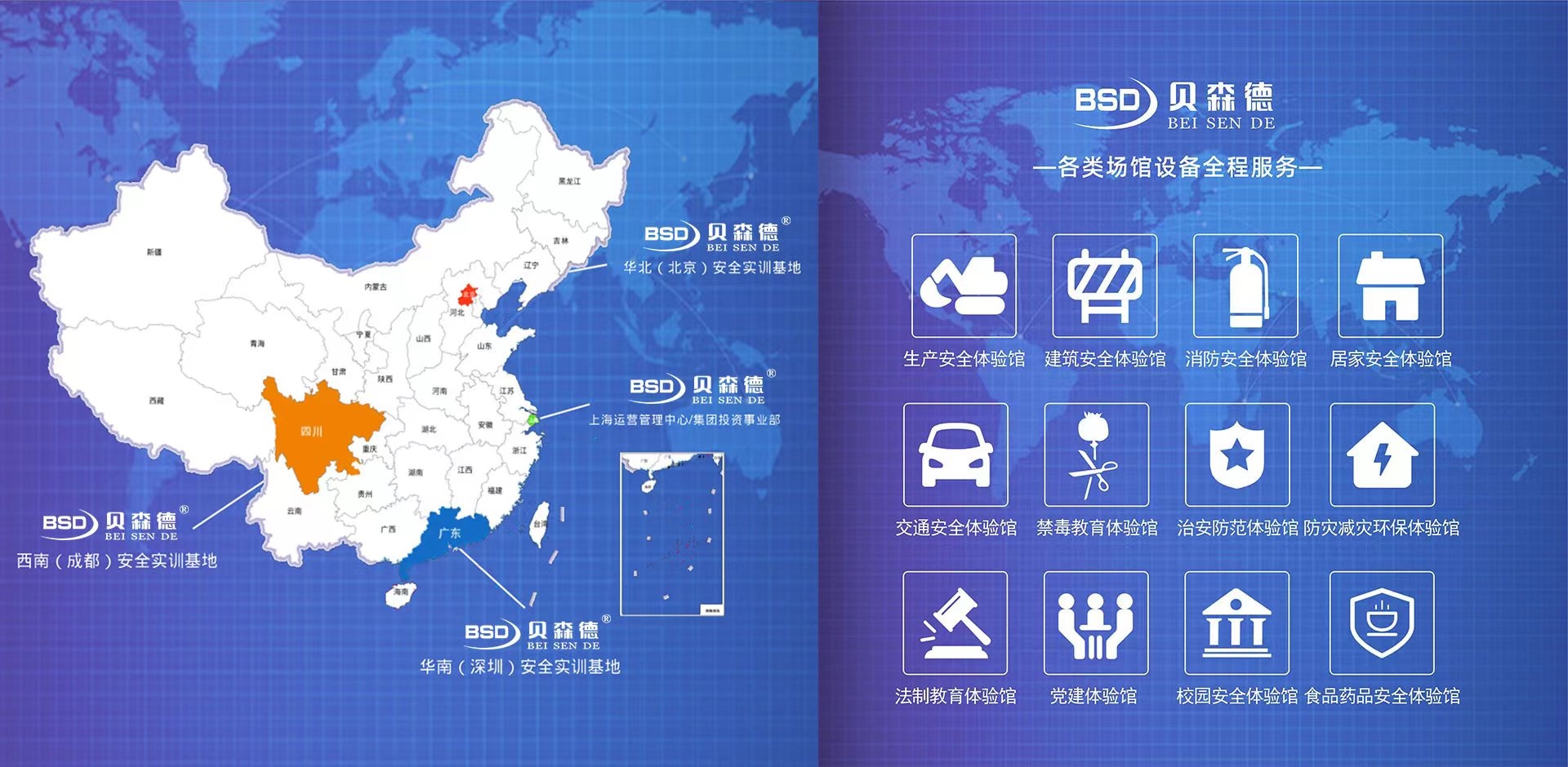 貝森德旗下有:貝森德、貝創(chuàng)科技、瓦令科技等品牌,主營業(yè)務(wù)由:體驗式教育服務(wù)、綠色環(huán)保服務(wù)等構(gòu)成。 提供各類場館設(shè)備全程服務(wù):消防體驗館、消防安全體驗館、生產(chǎn)安全體驗館、建筑安全體驗館、居家安全體驗館、交通安全體驗館、工地安全體驗館、VR安全體驗館、校園安全體驗館、食品藥品安全體驗館、安全教育體驗館、禁毒體驗館、禁毒教育體驗館、治安防范體驗館、防災(zāi)減災(zāi)體驗館、法制教育體驗館、黨建體驗館、模擬滅火體驗、安全體驗教室等。業(yè)務(wù)覆蓋全國,主要覆蓋上海、北京、深圳、四川成都、浙江、江蘇、云南等地。